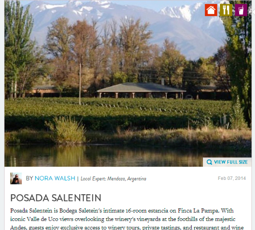 Posada Salentein recognized in "Best of Mendoza"s Wine Tourism 2015"